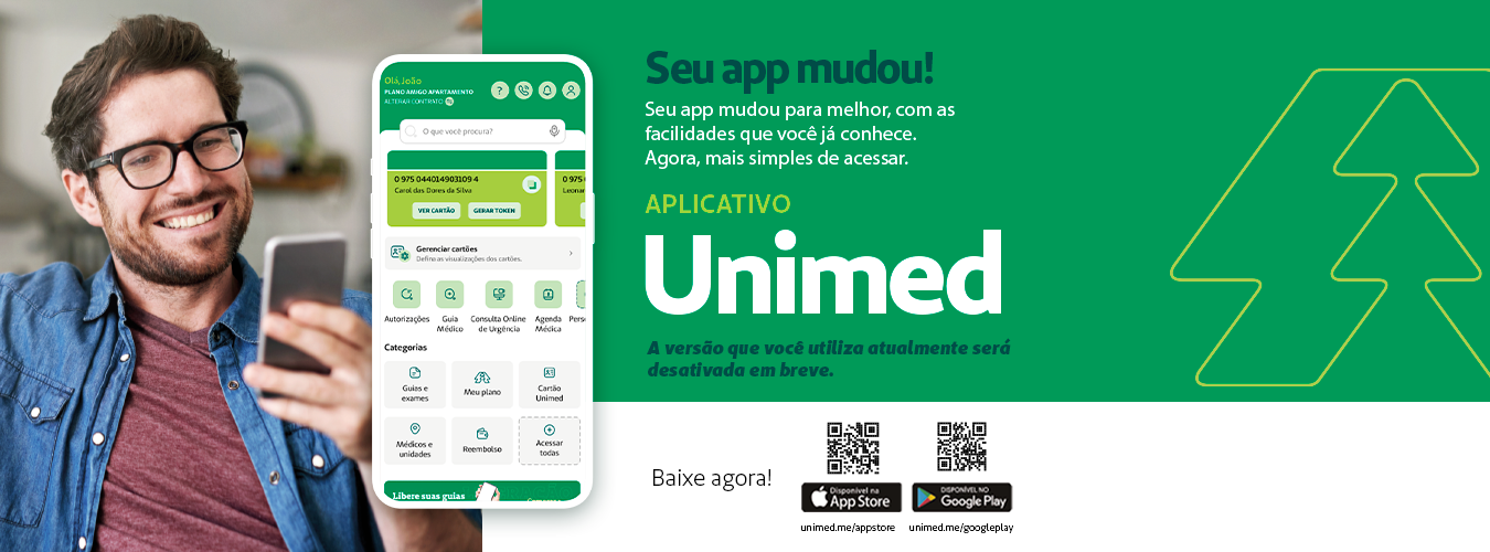 Usuários Unimed Palmas/ Sisemp devem trocar o aplicativo que permite o acesso as informações do Plano de Saúde. A Unimed lançou novo aplicativo oficial, totalmente reformulado para melhorar a experiência do beneficiário com uma navegação mais intuitiva, recursos inteligentes e tudo o que o cliente precisa na palma da mão.
